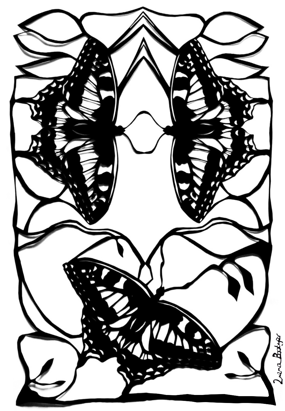 This butterfly papercut design has also been made into stained glass windows as a Birthday present.
